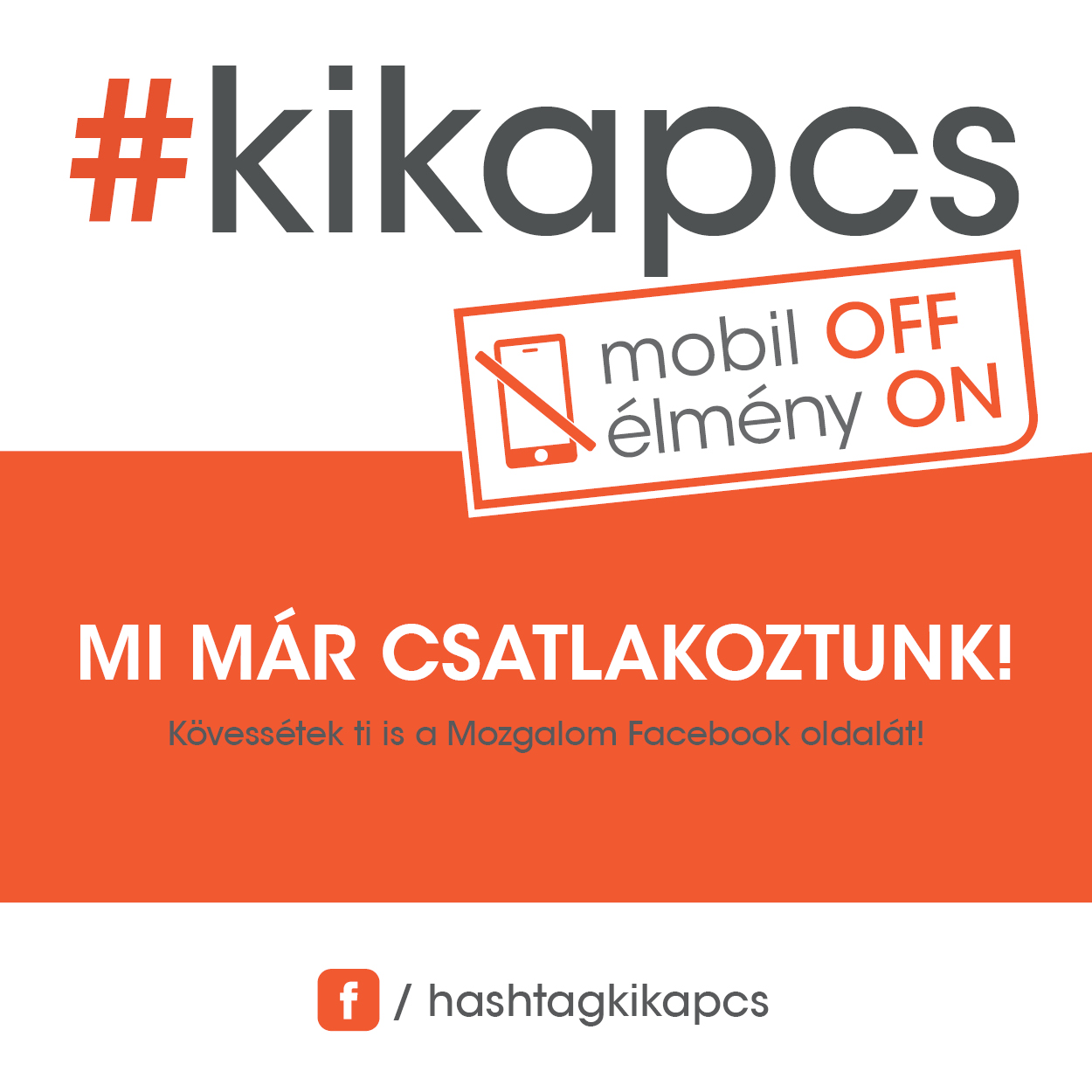 Az együtt töltött idő, a tartalmas programok összehozzák az embereket, így könnyebben megbirkóznak a hétköznapi gondokkal is. A #kikapcs Mobil OFF, Élmény ON mozgalom célja, hogy felhívja a figyelmet a minőségi időtöltés fontosságára, a virtuális világ alternatívájaként a valós környezetben megélt élmények egészséges arányban tartására. A mozgalom abban szeretne segítséget nyújtani, hogy ötleteket, tanácsokat, tippeket adjon az igazán kikapcsoló családi és egyéni kalandokhoz.