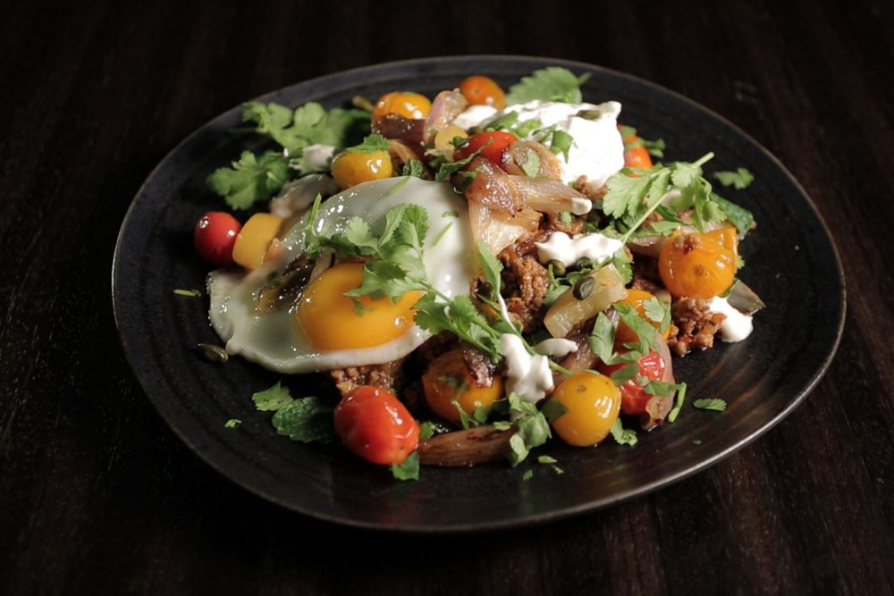 Húsvétkor gyakran kerül az ünnepi asztalra bárány. Általában sütjük, levest vagy ragut készítünk belőle, de próbáljuk ki ezúttal finoman fűszerezve, daráltan sütve, és tojásokkal körítve, joghurtos szezám pasztával lágyítva.