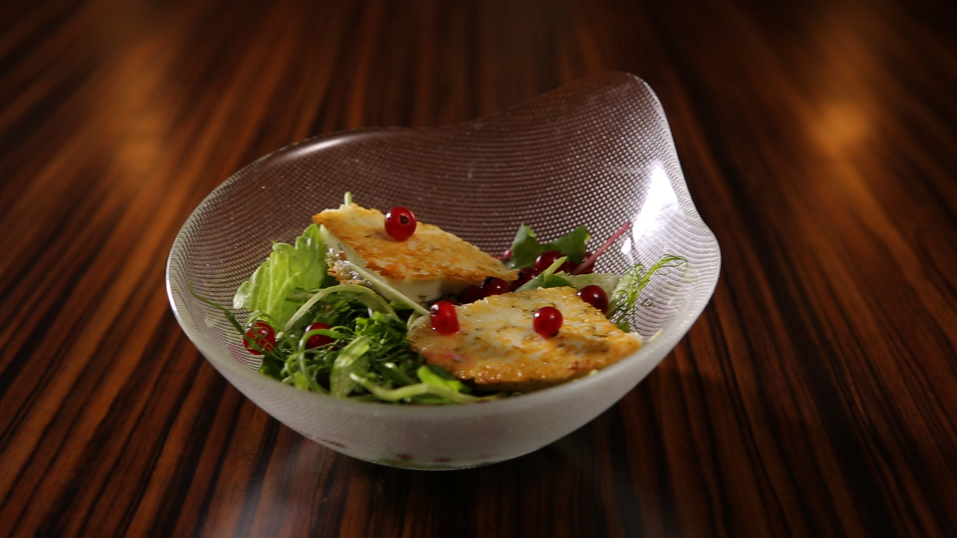 A kecskesajtból fél centi széles szeleteket vágunk, kevés olívaolajon néhány perc alatt átsütjük. Összekeverjük a salátát, rátesszük a meleg kecskesajtot és ribizliszemekkel szórjuk meg.