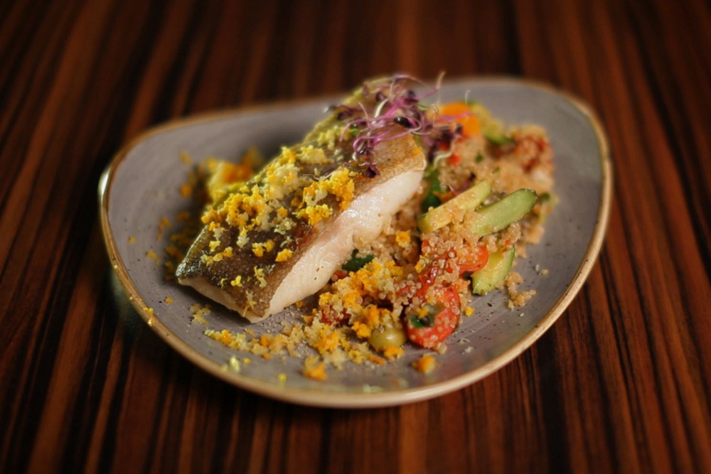 A quinoát alaposan megmossuk, majd sós vízben puhára főzzük, kb. 15 perc alatt, majd leöntjük róla a felesleges vizet. Kevés olívaolajon átsütjük az előtte sózott-borsozott tőkehal szeleteket, majd a megpároljuk az összevágott zöldségeket. Először a cukkini, majd az újhagyma, a fokhagyma, a koktél paradicsom és a szárított paradicsom kerül a serpenyőbe. Meglocsoljuk a lime levével, és belekeverjük a megfőtt quinoát. Hozzáadjuk az olívabogyót, jól összekeverjük, és megszórjuk a kakukkfűvel. Az elkészült salátát a tőkehallal tálaljuk, a legvégén reszelhetünk rá egy kis citromhéjat, nagyon illik hozzá!