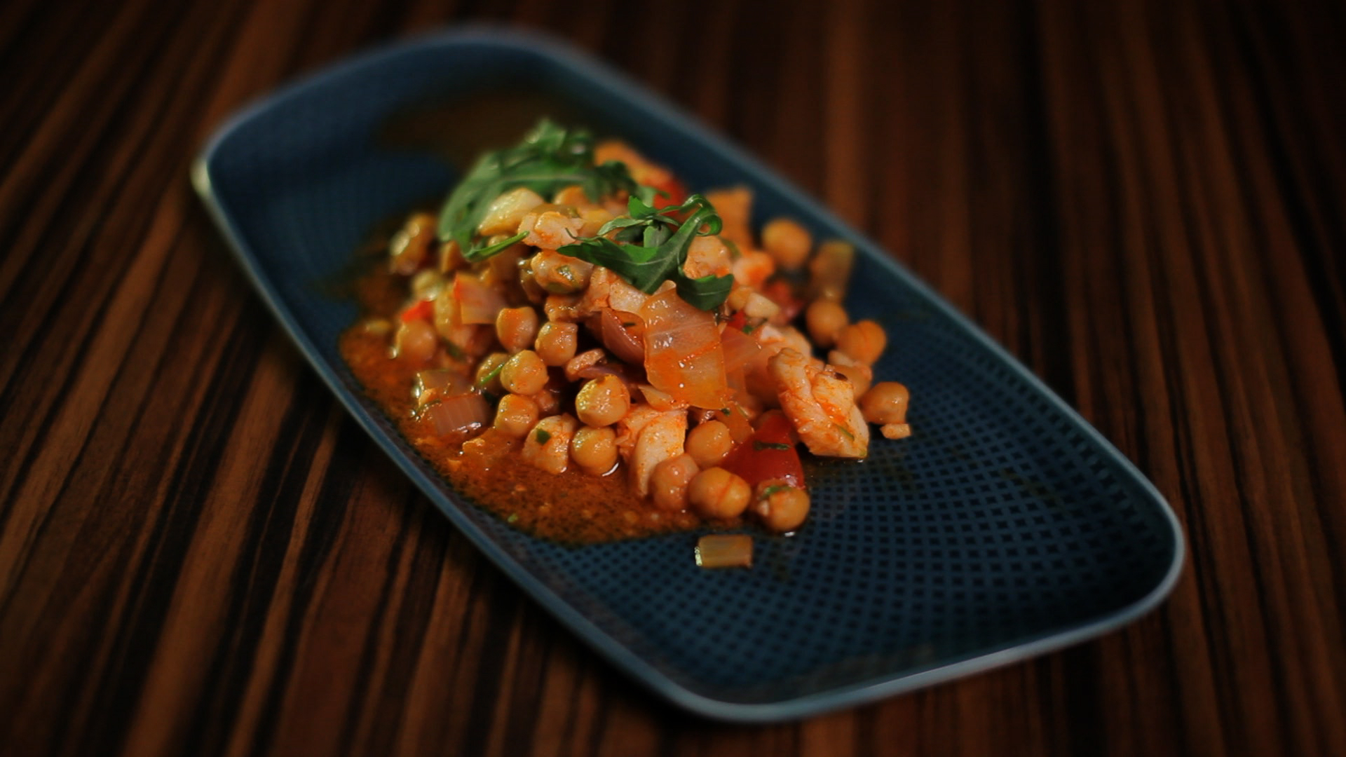 A csicseriborsót forró vízben megfőzzük, (kb. 15 perc), babérlevelet, kevés olívaolajat és sót adunk hozzá. A babérlevelet később vegyük ki! Egy serpenyőben kevés olívaolajon a vöröshagymát, a salottahagymát és a fokhagymát megpirítjuk, majd hozzáadjuk a paprikát és a köményt, néhány perc alatt készre pároljuk. Forró vízbe olívaolajat és koriandert teszünk, megpároljuk a tőkehalat, amint kész, kivesszük és hagyjuk kihűlni. Ezután egy tálba tesszük a megfőtt csicseriborsót, a párolt hagymát és a tőkehalat, hozzáadjuk a kockára vágott paradicsomot és a koriandert. Meglocsoljuk kevés olívaolajjal és egy fél lime levével. Óvatosan összekeverjük, sózzuk, borsozzuk. Rukkolával körítve szobahőmérsékleten tálaljuk.