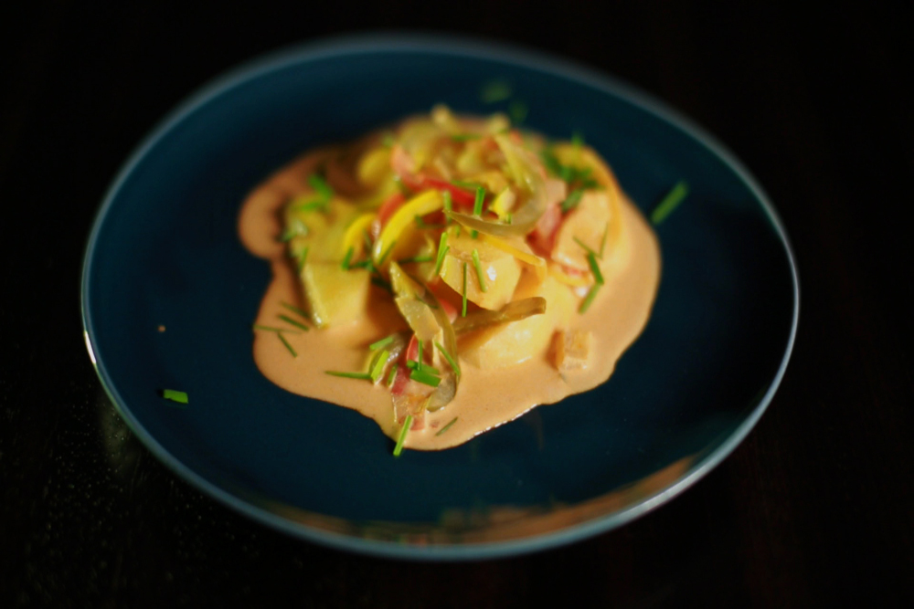 • kevés füstölt édespaprika és őrölt curry