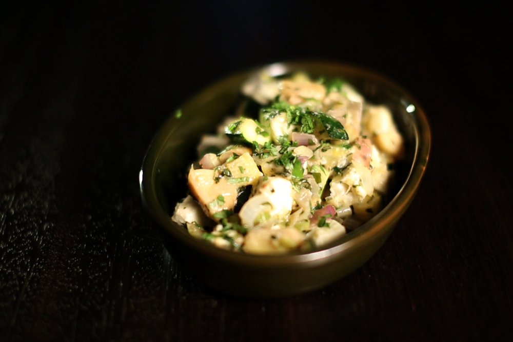 Ha a csillagtököt eddig csak rántott formában ismerted, nézd csak meg zöldséges egytálételünket, amelyben a patisszon teljesen új szerepben tűnik fel. Ha szereted a fűszeres paradicsomszósz markáns alapízét, akkor ez a vegetáriánus fogás is ízleni fog. Hozzávalók: fél patisszon (csillagtök) 2 db salotta hagyma 3-4 fej fokhagyma 1 kaliforniai paprika 8-10 db bébi cukkini 4-5 db hámozott paradicsom csipet sáfrány 2 cm gyömbér 1 evőkanál paradicsompüré fűszerek: fahéj, őrölt kömény, őrölt koriandermag, füstölt édespaprika 2 dl zöldség alaplé 1 db főtt burgonya 2-3 evőkanál csicseriborsó só, bors friss koriander, petrezselyem A zöldségeket előkészítjük és feldaraboljuk. Először elkészítjük a fűszeres paradicsomszószt. Ehhez kevés olívaolajon megdinszteljük a salotta hagymát, a fokhagymát és a gyömbért. Egy evőkanálnyi paradicsompürét adunk hozzá, és fűszerezzük fahéjjal, köménnyel, koriandermaggal és füstölt édespaprikával. Végül jöhet bele a sáfrány és a zöldség alaplé. Alaposan összeforraljuk a szószt. Egy másik edénybe kevés olívaolajat öntünk, amin megpirítjuk a patisszon, a cukkini, a kaliforniai paprika és a hámozott paradicsom darabokat. Sózzuk, borsozzuk és hagyjuk összefőni a hozzávalókat. Később hozzáöntjük az előzőleg elkészített fűszeres paradicsomszószt. Főt burgonya kockákkal és csicseriborsóval gazdagítjuk, ha szükséges, sózzuk, borsozzuk, és friss korianderrel, petrezselyemmel szórjuk meg. Tipp: Ha bármelyik összetevőt nem szereted, nyugodtan hagyd ki! Ez a […]
