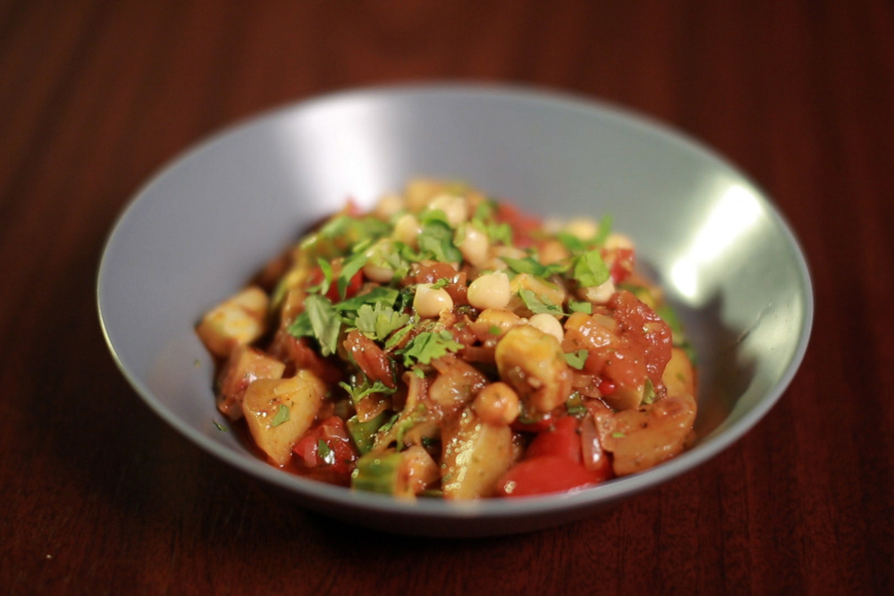 A már itthon is kapható, különleges okrát évszázadok óta használják az indiai konyhában, de igen elterjedt a Földközi-tenger partvidékén és az Amerikai Egyesült Államok déli államaiban is. A fiatal, paprikára emlékeztető terméseket sokféle módon készítik el, a levestől az egytálételeken keresztül a sültekig rengeteg étel alapanyaga lehet. Hozzávalók: 4 okra 1 vöröshagyma 3-4 fej fokhagyma 2 cm-es gyömbér 1 evőkanál paradicsompüré 3-4 db hámozott paradicsom 1,5 dl zöldség alaplé 1-2 teáskanál barnacukor fűszerek: őrölt kömény, őrölt fahéj, őrölt koriandermag, sáfrány só, bors kuszkusz elkészítése: fűszerek a vízbe: őrölt római kömény, fehér kardamom, turmerik, só 1 csészényi kuszkusz A zöldségeket előkészítjük, felaprítjuk. Kevés olívaolajon először a hagymákat dinszteljük meg, majd szépen sorban hozzáadjuk a gyömbért, a paradicsompürét, a hámozott paradicsomot és a fűszereket. Kevés zöldség alaplével összeforraljuk. A kuszkusz elkészítéséhez 2x annyi vizet teszünk fel forrni, mint amennyi a kuszkusz mennyisége. Fűszerekkel ízesítjük a vizet, majd amikor felforrt, folytonos keverés közben beleöntjük a kuszkuszt, hagyjuk egyet pöffenni, majd lefedve, lekapcsolva alatta a tűzhelyet, 10-15 percig állni hagyjuk. Tipp: még finomabb lesz a kuszkusz, ha lefedés előtt egy kis olívaolajat vagy vajat adunk hozzá.