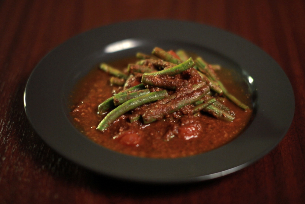 Lehet, hogy szokatlan párosítás, de hidd el, nagyon finom! Ennek a vegetáriánus ételnek a fűszerek adják a lelkét, az egzotikusságát, az aromáját… Hozzávalók: 1 csokor spárgabab 3 db koktélparadicsom kevés szezámolaj fűszerek: mustármag, görögszénamag, egész fahéj, édesköménymag, kurkuma, őrölt koriandermag, őrölt római kömény, őrölt szegfűszeg 3-4 evőkanál kókuszreszelék 1 evőkanál paradicsompüré 1 dl zöldség alaplé 1 evőkanál barnacukor kevés só A spárgabab sípok végét levágjuk, majd kisebb darabokra aprítjuk. A koktélparadicsomokat apró darabokra vágjuk. Kevés szezámolajon megpirítjuk a magos fűszereket: mustármagot, görögszénamagot és az egész fahéjat. Megszórjuk kókuszreszelékkel, majd hozzáadjuk az édesköménymagot és a paradicsompürét. Felöntjük kevés zöldség alaplével, hagyjuk összeforrni, majd hozzáadjuk a paradicsomkockákat is. Őrölt fűszerekkel (kurkuma, koriandermag, római kömény, szegfűszeg) és barnacukorral ízesítjük, sózzuk. Ezt követően kerül bele a spárgabab, egy kis zöldséglé és víz. Bő 15 percnyi párolás után már kellőképpen puha, de mégis ropogós a spárgabab, így tálalhatunk is. Tipp: Nyugodtan kóstolgassunk a sok-sok fűszer között, de akkor lesz az igazi a végeredmény, ha egyik fűszer sem viszi el a pálmát, hanem szépen, békességben segítenek egymásnak az ízek kibontakoztatásában.